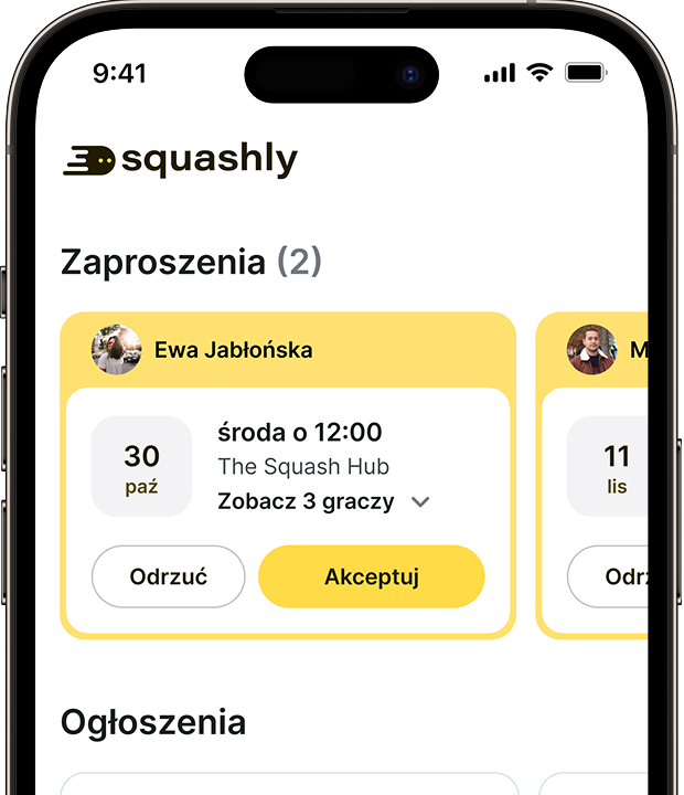Squashly to nie tylko rezerwacja kortów — to Twój przewodnik po squashowej społeczności. Kilka kliknięć wystarczy, by odkryć pobliskie korty, nawiązać kontakt z graczami na podobnym poziomie i znaleźć odpowiedni czas i miejsce na grę. Niezależnie od tego, czy szukasz towarzyskiej gry, rywalizacji czy regularnych treningów — Squashly Ci w tym pomoże.